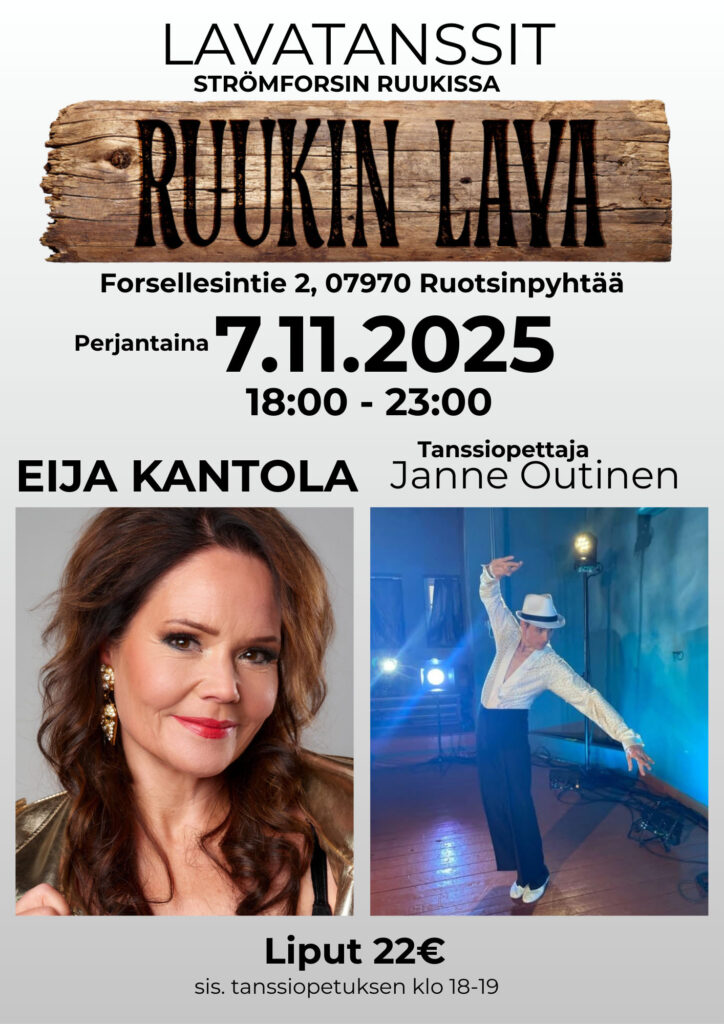 Tapahtuma alkaa klo: 18-19 Janne Outisen tanssiopetuksella (kuuluu lipun hintaan)